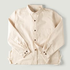 Each season, the brand launches a new capsule featuring organic dyes, such as matcha tea, coffee, or charcoal, and accompanies its garments with a unique detail: the collar button. This is a hand-made porcelain button crafted from clay ore mined in the town of Amakusa, in Kimamoto Prefecture, Japan. Amakusa pottery stone is a historic pottery stone, used in Japanese pottery since the 17th century. These porcelain buttons, specially designed for Seuvas, are traditionally made in Amakusa. For this "Coffee" capsule collection, the button designs feature small coffee beans surrounded by a traditional pattern.