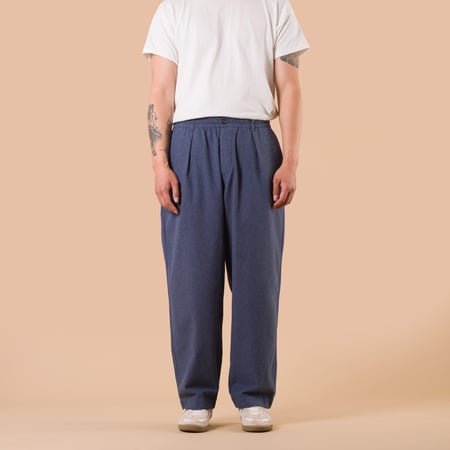 Inspired by a vintage jacket sourced by the Universal Works team, the E130 Jacket features a relaxed, boxy silhouette designed for everyday ease. It is crafted from Sintra recycled cotton, a contemporary fabric that evokes the aesthetic of vintage workwear denim with a simple, loose weave, slightly irregular texture, and distinctive dry hand feel—lightweight and ideal for mid-season wear.