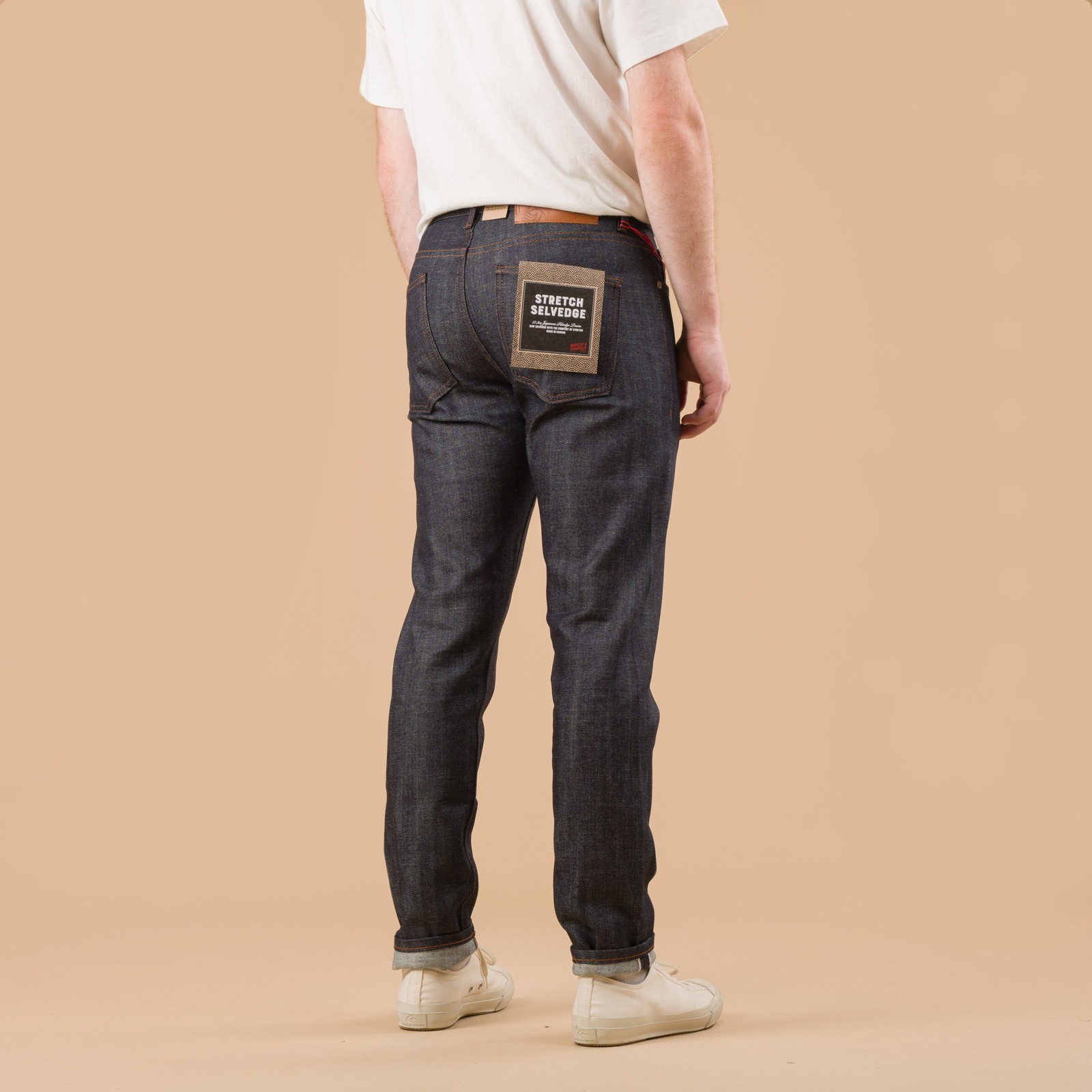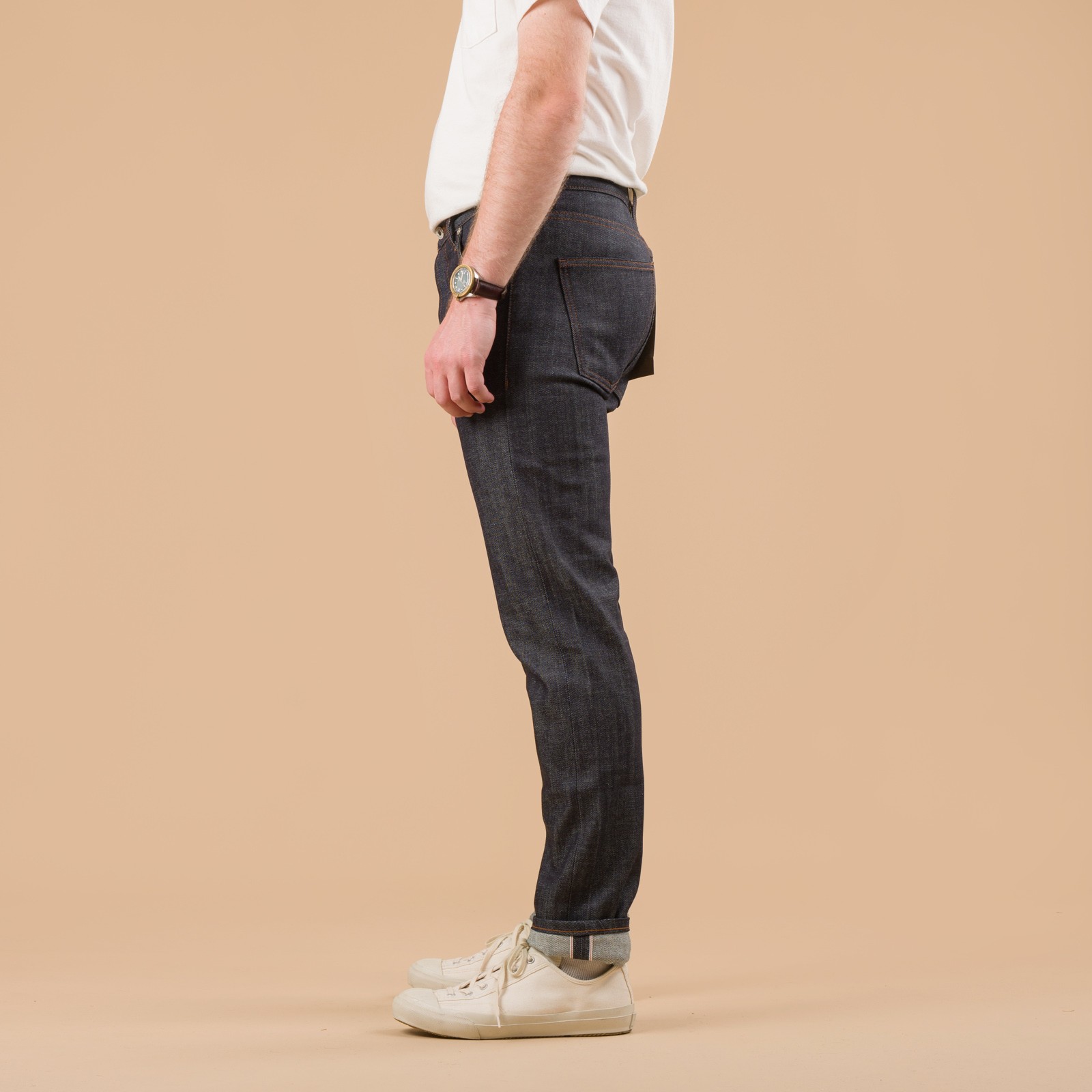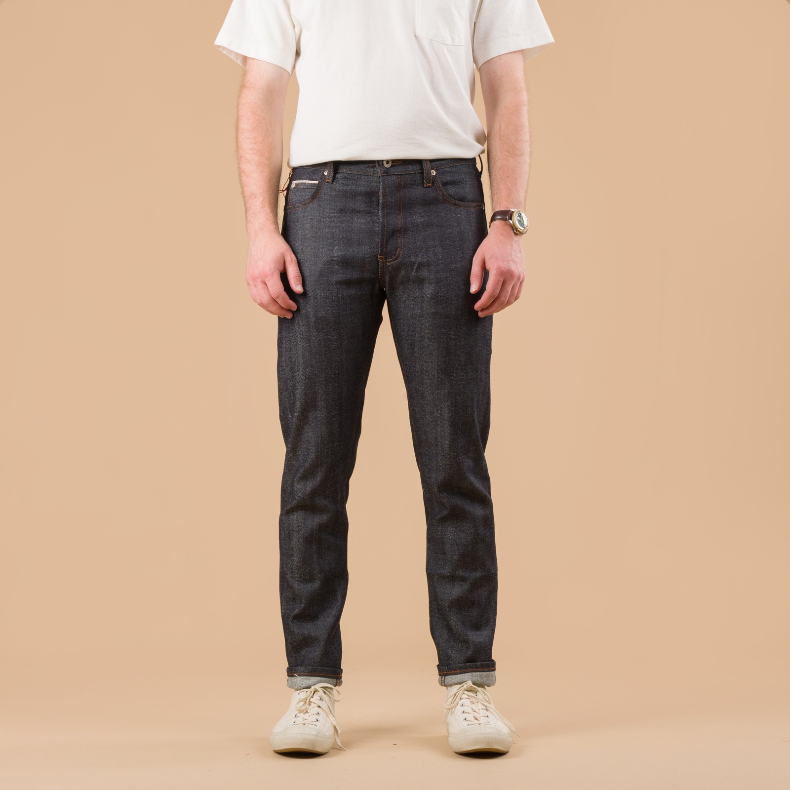 12.5oz indigo rope dyed Japanese selvedge denim, woven on vintage shuttle looms in a right hand twill construction. The Indigo dyed warp and white weft combined with a red line selvedge ID give these jeans a classic look. This denim is made with 2% stretch for added comfort, without compromising durability.