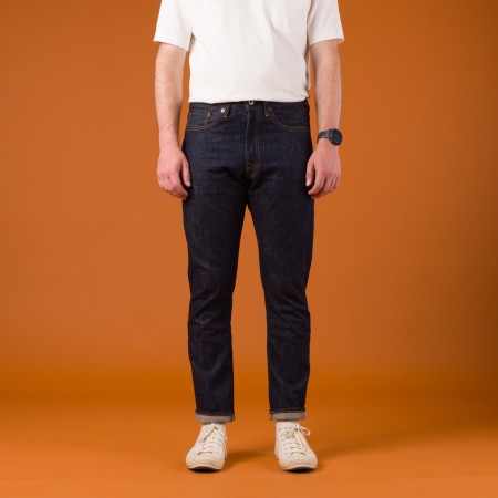 This selvedge denim from 14.8 oz is made from American cotton sourced from the Texas. This is a rough and sturdy fabric of medium thickness. By spinning this slightly stronger American cotton, Japan Blue increases its resistance and also intensifies its irregularities.