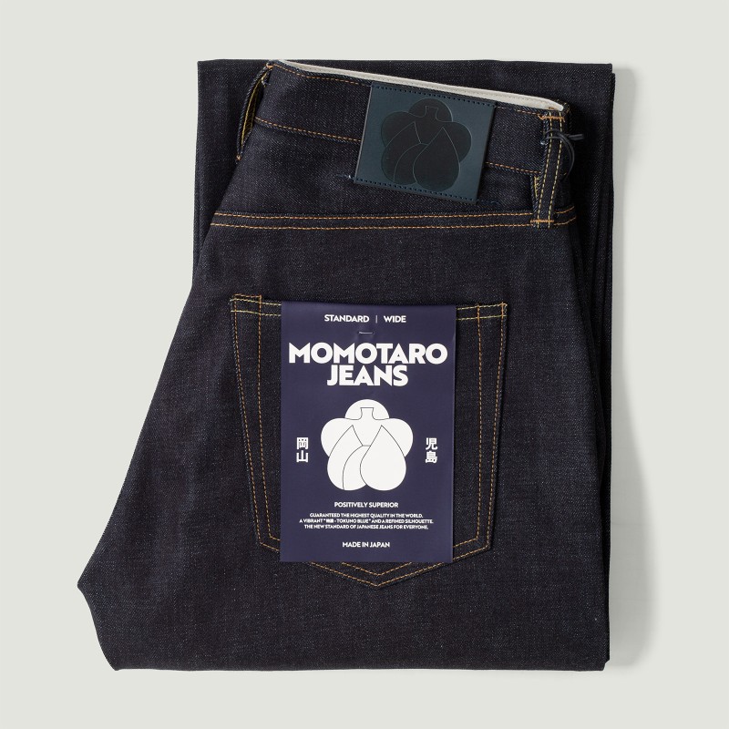 The #400 Standard Wide 14.7oz model from Momotaro Jeans highlights the exclusive « 特濃 - TOKUNO BLUE » fabric, known for its exceptionally deep indigo tone and pronounced texture. Designed to be worn with the inherent rigidity of unsanforized-style selvedge denim, this 14.7oz fabric is carefully woven on traditional shuttle looms. The fabric construction has been refined to intensify the indigo color of the warp by selecting finer weft yarns, while also applying a treatment process that minimizes shrinkage after washing.