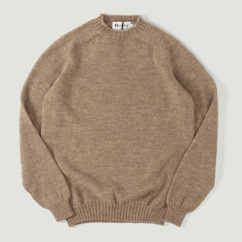 Harley Of Scotland Voe True Shetland Crew Neck Fawn Sweater