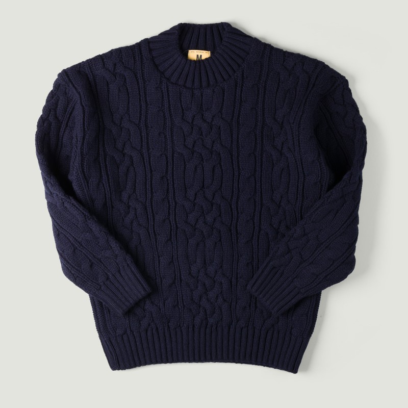Nitto Knitwear Ohannes Navy Cable Knit Crewneck Sweater
