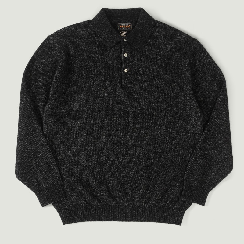 Beams Plus Knit Polo 9G Wool Silk Shaggy Yarn Black