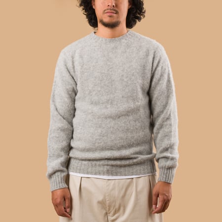 Harley Of Scotland Shaggy Crew Neck Pebble Sweater