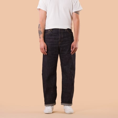 Its straight cut allows versatile wear, whether paired with raw workwear outfits or combined with casual or heritage-inspired styles. The subtle dobby stripes and deep indigo perfectly embody the balance between tradition and modernity that Omoto is known for.