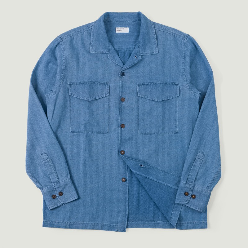 Universal Works Attendant Shirt Washed Indigo Recycled Herringbone