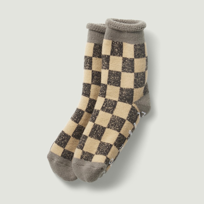 ROTOTO Thick Pile Room Checkerboard Wool Gray Socks