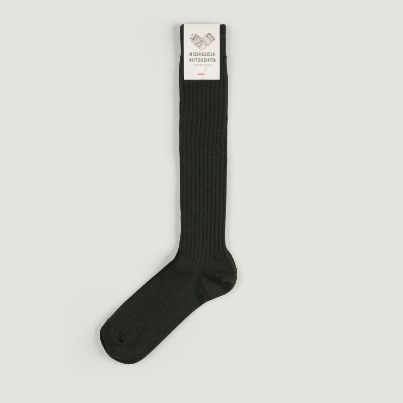 NISHIGUCHI KUTSUSHITA Merino Wool High Socks Dark Olive