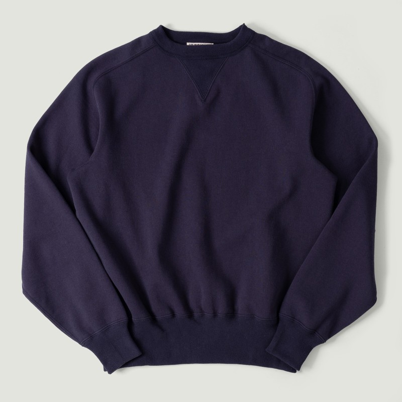 The nap finish (brushed interior) provides warmth and comfort, with a soft hand feel. The fleece has been prewashed to stabilize the size while retaining its thickness and structure. The hem and cuffs feature tighter ribbing than standard sweatshirts, recreating the balance and appearance of period pieces. The boxy fit allows this sweatshirt to be worn alone or layered, reflecting the casual, utilitarian aesthetic typical of XX Development. Manufactured on traditional Japanese knitting machines, it demonstrates the label’s dedication to craftsmanship and attention to detail.