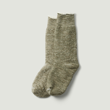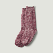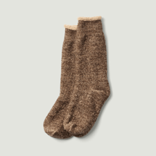 Conçues en s'inspirant des chaussettes d'alpinisme, elles sont fabriquées dans une matière qui mélange de la laine mérinos sur l'extérieur à du coton biologique non teint à l'intérieur. On retrouve ainsi la sensation douce et moelleuse d'un sweat-shirt à ses pieds.
