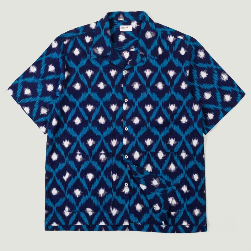 Chemise Universal Works Deck Shirt Diamond Ikat Indigo