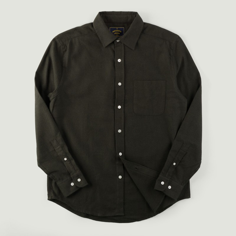 Portuguese Flannel privilégie la qualité à la quantité. La marque développe ses propres tissus exclusifs, tissés de manière traditionnelle au sein d’ateliers portugais certifiés. Chaque pièce est ensuite coupée et assemblée dans le nord du Portugal. Les collections sont réalisées dans des matières naturelles comme le coton, le lin ou la laine, et rehaussées de boutons en résine, corozo ou nacre selon les modèles.