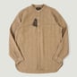 Son col officier (ou « band collar ») lui confère une allure épurée, tandis que sa coupe pull-over, avec patte de boutonnage partielle, évoque les uniformes utilitaires d’antan. Une poche poitrine plaquée vient ponctuer l’ensemble d’un détail fonctionnel discret, fidèle à l’esthétique minimaliste propre à Beams Plus. Légèrement ample, mais soigneusement structurée, cette chemise offre un tombé naturel et confortable, idéale aussi bien pour un style soigné que décontracté.