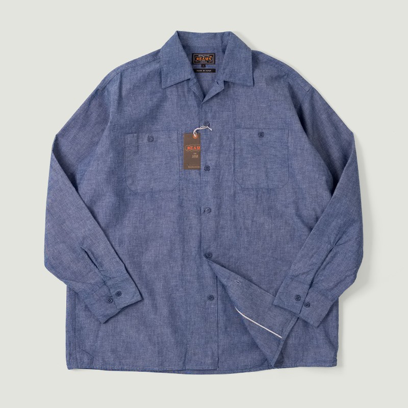 Chemise Beams Plus Mil Open Collar Chambray Blue