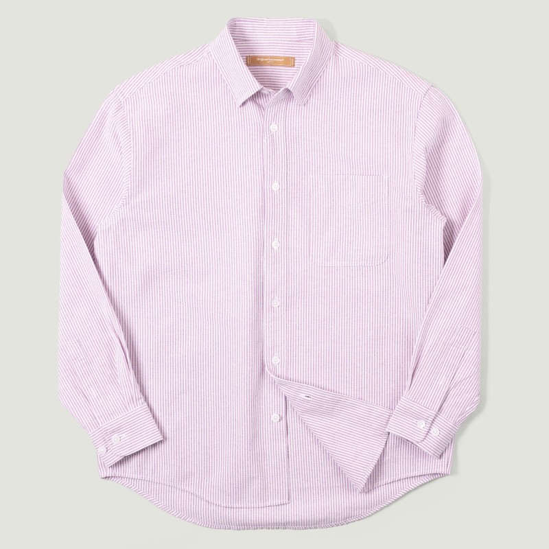 La coupe oversize se caractérise par un volume ample au niveau du buste et des épaules tombantes, facilitant les superpositions. Le pli d’aisance au dos apporte davantage de liberté de mouvement, tandis que le cordonnet dorsal intégré permet de suspendre facilement la chemise sans en déformer le col.