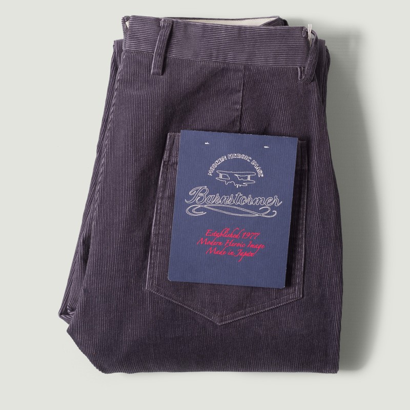 C'est sur cette base que Barnstormer a décidé de revisiter l'icône dans un velours à fines côtes japonais 100% coton, subtilement délavé pour lui apporter un aspect résolument vintage. Le 1633P reprend les grandes lignes du modèle d'origine, avec deux grandes poches à main plaquées, accessibles par une ouverture oblique, et deux grandes poches arrière à rabat boutonné. La coupe propose une taille haute et du confort aux cuisses, pour terminer sur un bas de jambe légèrement fuselé avec un ourlet comprenant un excédant de longueur si le pantalon se révélait trop court.
