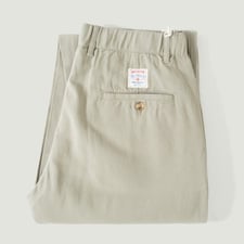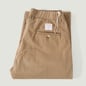 Confectionné dans un twill 100 % coton, le tissu présente une main douce et une surface légèrement duveteuse. La construction est réalisée dans la plus pure tradition des modèles d'époque, jusqu'aux coutures réalisées selon les techniques des années 80. La teinte Beige, claire et polyvalente, évoque les chinos vintage tout en restant facile à associer avec un vestiaire casual moderne.