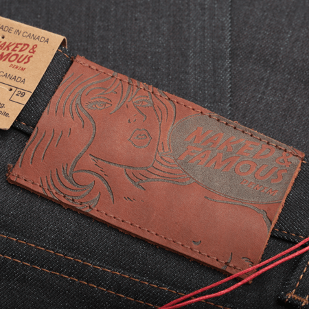 Le "Nightshade Stretch Selvedge" est un incontournable chez Naked & Famous, surtout à l'approche des beaux jours. Cette toile est un parfait compromis entre légèreté, confort et robustesse. Tissée avec 2% d'élasthanne, elle se révèle agréable et souple dès les premiers ports. La couleur est créée avec l’ajout d’une touche de colorant noir à la teinture indigo. La combinaison de ces deux colorants permet d'obtenir un ton indigo très lisse et profond, à la limite du noir, mais qui prendra une magnifique teinte "bleu nuit" au fil du temps.