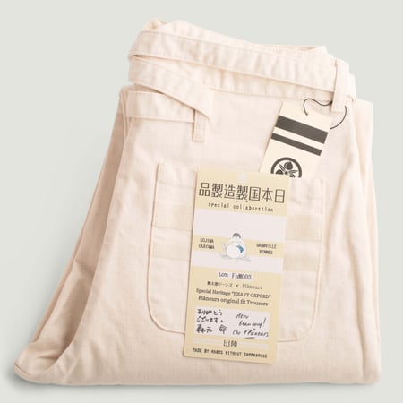 Le 0605 "Natural Tapered" chez Momotaro est une coupe confortable, à la taille haute avec une fourche profonde, basculée sur l'arrière pour un meilleur maintien, du confort aux cuisses suivi d'un tombé légèrement fuselé sans trahir une ouverture de jambe plus droite que les autres modèles de la marque.