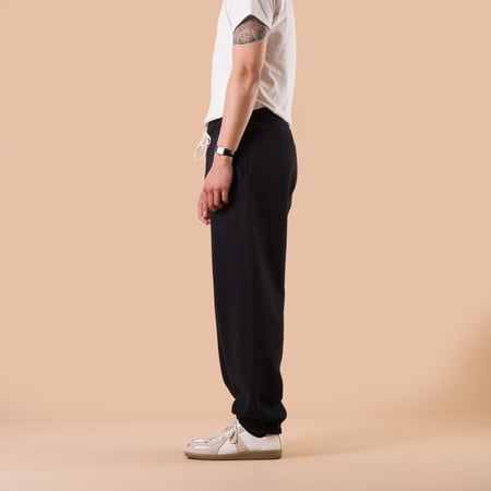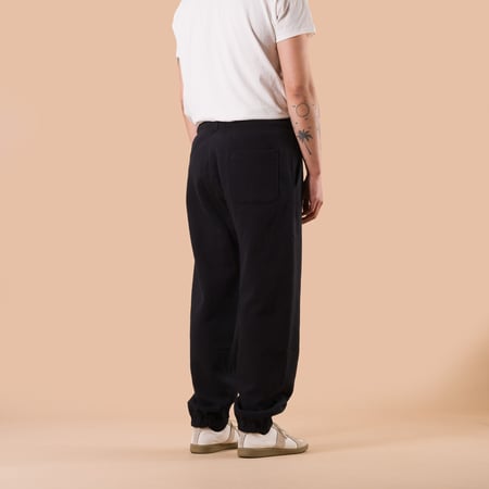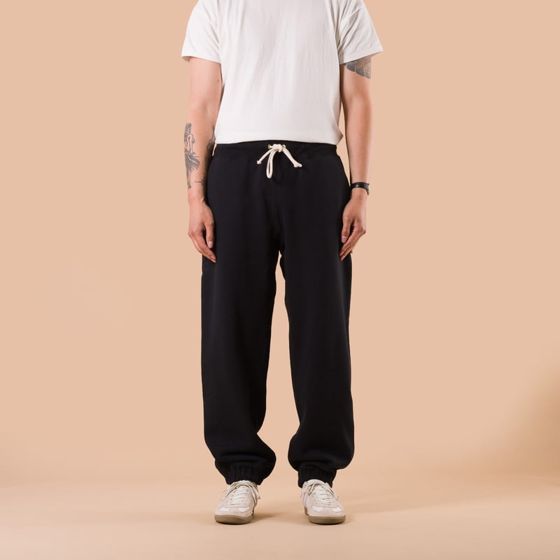 La taille élastiquée est complétée par un cordon tressé, tandis que les chevilles resserrées assurent une silhouette nette. Fidèle à l’approche de la marque, chaque détail a été pensé pour conjuguer confort moderne et esthétique vintage authentique.