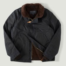 La New Deck Jacket est une réinterprétation de la célèbre Deck Jacket N1 (veste de pont) par Manifattura Ceccarelli. La Deck Jacket était portée durant la Seconde Guerre mondiale par les soldats de l'US Navy pour affronter le froid sur les ponts et les coursives des bateaux. Elle est dotée de deux poches à l'extérieur et d'une poche zippée à l'intérieur. Sa coupe ajustée est également la plus courte chez Manifaturra Ceccarelli. Son col peut être porté rabaissé ou relevé pour se protéger efficacement des intempéries. Une patte de boutonnage présente sous le col permet par ailleurs de le maintenir relevé et de couvrir efficacement le cou.