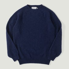 Ce pull est tricoté à partir de pure laine Shetland vierge proposée par J.C. Rennie, provenant de la filature Milladen Mill en Ecosse. C'est une laine reconnue pour sa texture, ses qualités thermiques ainsi que pour sa robustesse. La particularité de ce pull est son brossage: afin de lui donner cet aspect duveteux, il a été brossé 1 fois en utilisant non pas une brosse fabriquée par l'homme mais une cardère sauvage (Dipsacus Fullonum), une espèce de chardon qui, une fois séchée, se révèle une brosse naturelle au résultat unique.