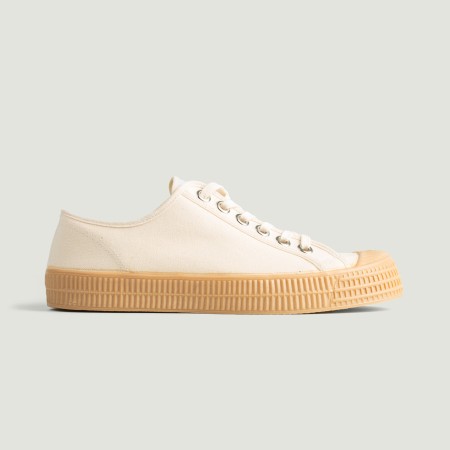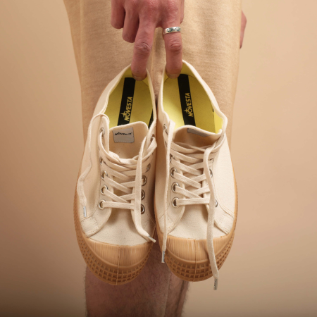 La semelle gaufrée signature de la marque, en caoutchouc naturel, est vulcanisée. La vulcanisation est un procédé qui consiste à ajouter une petite quantité de soufre au caoutchouc, puis de le coller à chaud. Cette opération va optimiser le caoutchouc en le rendant plus souple et résistant. Il n’y a plus de couture entre la tige en tissu et la semelle de la chaussure, donc plus de semelle qui se décolle.