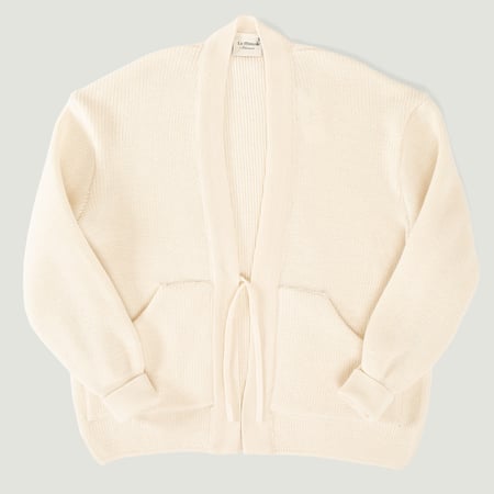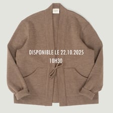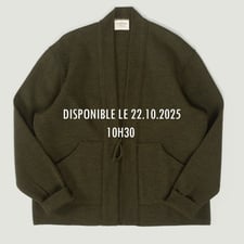 La coupe droite, généreuse dans ses volumes, s'associera aisément à des pièces hivernales plus épaisses, mais fonctionnera également en mi-saison sur un t-shirt ou une chemise. Pour plus de praticité, 2 poches plaquées, à l'ouverture oblique, ont été ajoutées et doublées d'un coton robuste pour en accentuer la solidité et prévenir la déformation que pourraient engendrer les utilisations répétées. Souhaitant conserver le minimalisme inhérent à la Noragi authentique, nous avons fait le choix d'un cordon à nouer en guise de fermeture, remplaçant les traditionnelles boutonnières des cardigans.
